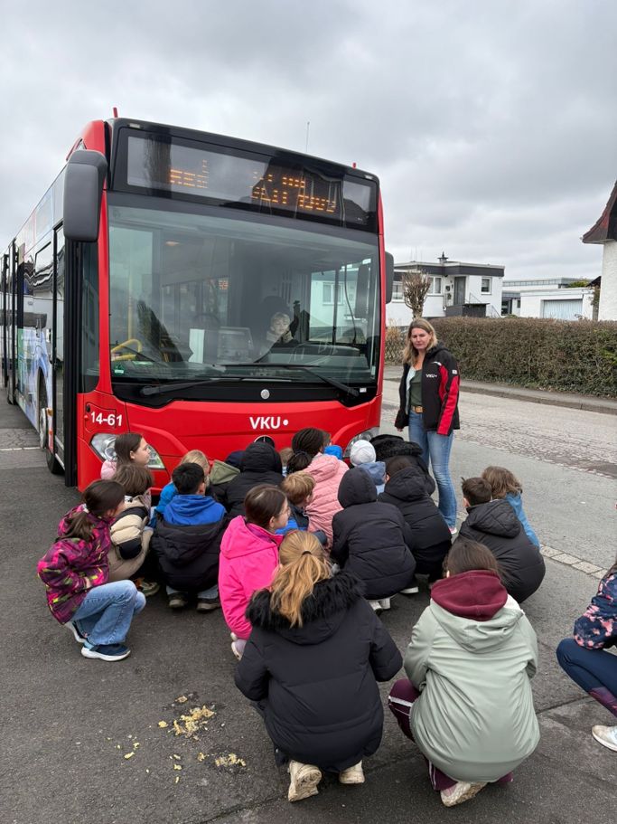 Die ViertklässlerInnen unserer Schule hatten kürzlich einen spannenden Besuch bei der Busschule der Verkehrsgesellschaft Kreis Unna. Dort lernten sie auf anschauliche und kindgerechte Weise, wie man sich sicher im Bus und an der Haltestelle verhält. Besonders interessant war es, selbst einmal in einem echten Bus zu sitzen und wichtige Regeln direkt vor Ort zu üben.